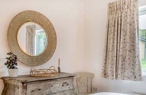 Steps take you up to the front of this stylish lodge and inside natural tones and elegant decor create a welcoming atmosphere. Kick-off shoes and take it easy in the lounge with a good book, or light the wood burner and snuggle up on the sofa with a film on the TV. When it’s time to eat a neat kitchen overlooks the lounge so you can whip up a meal and still be part of the conversation. Dine at the table seating four people and if the weather is good, push open the French doors and let the fresh air breeze in. The bedrooms are located off from the living area, and come slumber time you can choose between two lovely king-size beds. Both are generously sized and beautifully furnished with bedside tables, ornate mirrors, and sumptuous furnishings. In the morning, feel your spirits lift as you step out onto the terrace and enjoy breakfast at the table. Children will also love playing on the lawn shared with the neighbouring lodge (Monks Rest).