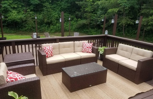 Enjoy the rustic motif in this wooded, Hillside lodge while still having the modern conveniencs of home