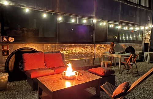 Welcome to the Invisible Bus, a magical getaway on the edge of the Salton Sea in Bombay Beach. Spectacular 360 views of desert, sea, mindblowing sunsets and starry skies. The perfect place to enjoy all the public art in this town as well as near by Bashfords Mineral baths, Slab city, Anza Borrego and Salvation mountain. Or just stay put w/ AC/Heater, Wifi, Parking. Elegant, cozy, quiet. Check out the bus' transformation and tag us on Instagram @theinvisiblebus