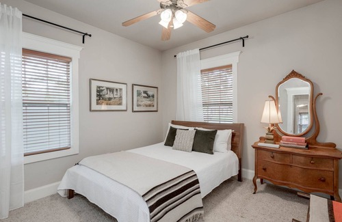 A spacious Johnson City home, just one block from the Main Square. Four bedroom, two bath house with vaulted living and kitchen space. The home has three queen beds, one day bed and one sofa - sleeping a total of 8 people. An air mattress is available as well.