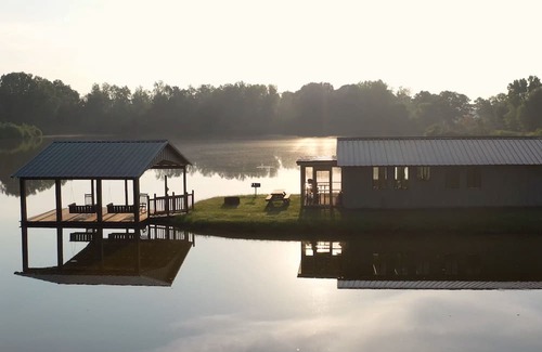 Our Pond House sits on a 15-acre pond on a peninsula, complete with a boat dock and scenic views. You can enjoy the soft sounds of water and a South Georgia country evening from a screened-in porch, or watch the sunrise over nearby pastures across the water. With the Pond House’s countryside charm, along with modern amenities including AC/heat, this house is perfect for a getaway staycation.