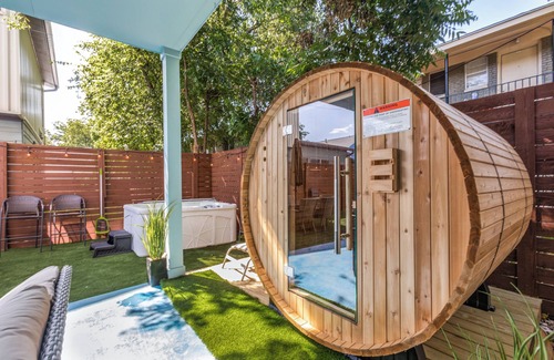 The Q - A modern Austin House w/7 Beds, 3 baths Hot Tub, Golf Sim + DT is located in Govalle. The Q - A modern Austin House w/7 Beds, 3 baths Hot Tub, Golf Sim + DT provides accommodation, featuring Bedding/Linens, Spa, Fireplace/Heating, among other amenities. This House features Bedding/Linens, Spa, Fireplace/Heating, to make your stay a comfortable one.