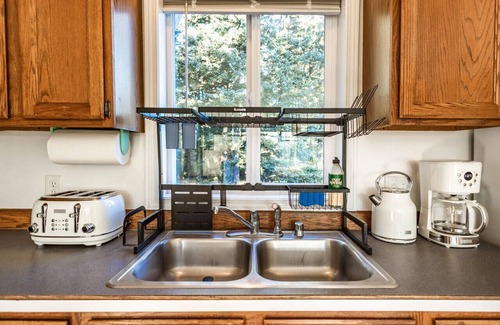 This is a beautiful, small, residential neighborhood directly across the street from Mill Bay Beach. A popular local kodiak beach where you can sunbath, swim, kayak & paddle board. Outside your door is the bike/walking path that leads you a 1/4 mile to the fascinating Ft. Abercrombie, full of sunbeam lit mossy hiking trails, blueberry & salmonberry bushes, & rugged cliffs with hidden WWII bunkers. Also, another local favorite State Park beach with easy access. The Shoreline is also close to the downtown life, 2.5 miles, and Safeway is about 1 mile.