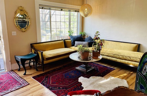 This home offers a retreat: an experience of serenity and a centered state. With it's features of an outdoor sauna & cold plunge, clawfoot tub & salts, in & outdoor generous space with fireplaces, and the company of air-purifying plants--working from home finally feels peaceful. It is in a quiet neighborhood only 5 miles from the center of the city and offers a place to ease and rest between local and far-away adventures. Located 1 mile or less from essentials: max, bus, groceries, coffee, etc.