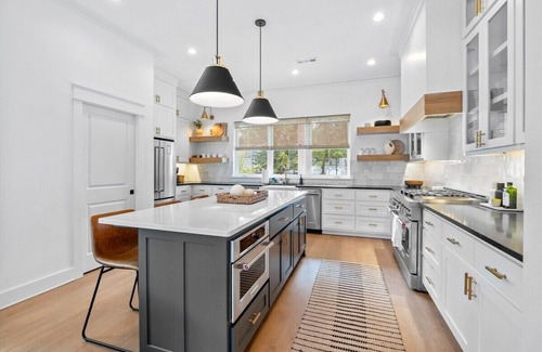 Welcome toThe Weekender House - our five bedroom, brand new oasis in Downtown Bentonville! Truly the ultimate place to spend a weekend, you'll find luxury amenities and plenty of living space for 16 people between our main house and guest house. Unwind on our gorgeous private outdoor patio with plunge pool, TV and lounge seating, cook a meal in one of our TWO state-of-the-art kitchens or cuddle up for a movie on the sofa in any of our THREE living spaces.