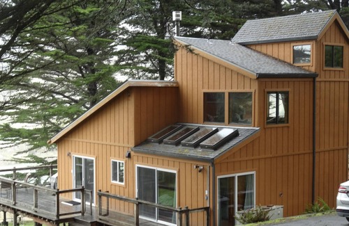 Tidesong is situated on a hill in Goat Rock State park overlooking the Russian river estuary, with views of the Pacific Ocean.