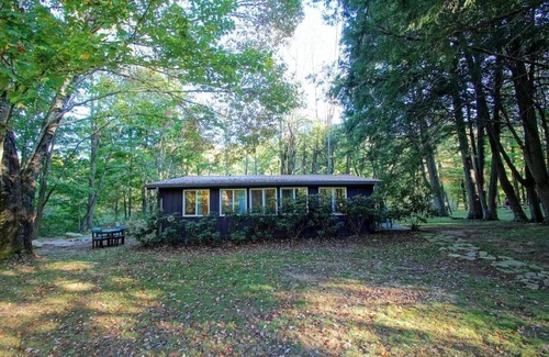 We love the window-covered walls! It's like being in a tree house... on the ground:) Outside is an acre of flat wooded and grassy yard for exploring plus a firepit and plenty of seating (rocking chairs, swing, table and chairs). We leave you all of the things you need for a great fire!! There is a chance that guests will be staying next door at the antique cabin while you occupy the tiny house. On the other side of the cabin, there is a family favorite guaranteed-catch trout farm - but, occasionally, you may smell the fish!