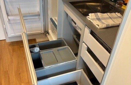 Modern, functional kitchen with stovetop (available on request), oven, coffee machine, and dishes – ideal for self-catering