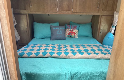 Reconnect with nature at this unforgettable escape. Enjoy vintage vibes with modern conveniences in this unique retreat. The cozy accommodations are doubled by a large deck to relax, dine, entertain or grill.