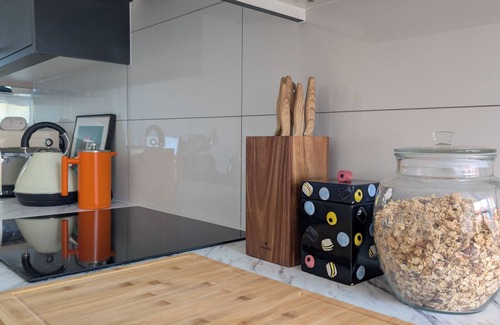 A beautiful, bright and comfortable flat with high ceilings by the canal, meters away from Hackney Wick station, featuring a comfortable and solid double bed and a sofabed. The flat is fully equipped with all necessities and accessories for short and long stays.