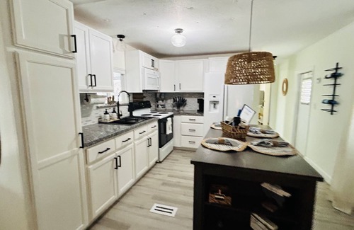 Newly renovated 2 bedroom /2 bath home. Fully furnished for you and your family. Sleeps 4, 2 queen size beds. Just added this summer an full outdoor kitchen. Outdoor you have a full sized refrigerator, sink with cold and hot water, a portable stove top, a deep fryer, an ice maker and plenty of counter space for your convenience. You can choose between the great outdoor area under a Tiki with BBQ and plenty of seating for your entertainment or the enclosed lanai for a nice nightcap. Also, you will have full access to two exclusive private beach areas where you can spend the day out as we are on the bay side. Enjoy some kayaking, biking, or even jetskiing on the beautiful waters of the Florida Keys.