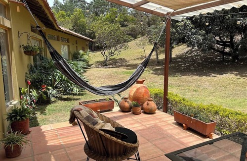 Located in Villa de Leyva, this 2-bedroom, 3-bathroom cottage lets you experience it all. Fans of nature and the outdoors will love being 9 minutes by car from Pozos Azules and 56 minutes from Lake Iguaque. Plaza Major of Villa de Leyva and Casa Museo Luis Alberto Acuna are just a short walk away.