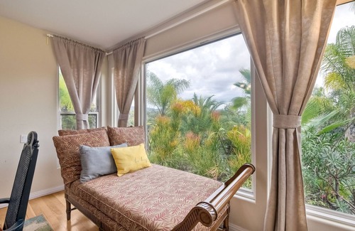 High up in the hills of Vista sits an amazing, quiet, spacious, half-acre residence with incredible views of the hills of Vista and the city lights below at night. Custom House was built in December 2017. Its fully furnished with patio furniture, big screen TVs, full size refrigerator, microwave, dishwasher, and full private bath.