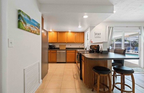 Welcome to the perfect vacation home that will make your stay comfortable and enjoyable. This charming pool home features three bedrooms and two full bathrooms. The spacious and inviting living room and game room are perfect for socializing and spending quality time together. The kitchen is fully equipped with everything you need to prepare delicious meals during your stay. You can also enjoy cooking outdoors on the propane BBQ grill and soaking up the sun in the screened in outdoor oasis. The pool is perfect for cooling off during hot summer days and enjoying a refreshing drink. The vacation home is filled with all the necessary amenities to make your stay comfortable and relaxing. High-quality linens and comfortable beds ensure a restful night's sleep, so you can wake up refreshed and ready to explore. Whether you are looking for relaxation or adventure, this retreat is perfect for you. Come and enjoy a memorable stay in this beautiful vacation home.