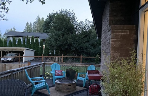 This dog-friendly cozy cottage is the upstairs of a darling duplex overlooking Osterich Bay! It’s perfect for a quiet retreat, despite being only minutes from all the big city has to offer! The wrap around deck has 3 separate seating areas, with a fire pit for unforgettable star gazing! When the tide is in, you can almost drop your kayaks off the deck, for hours of water fun, without leaving "home". Let your dog live his or her best life with their very own private dog door , which accesses the fully fenced deck and front yard. No more midnight bathroom breaks for your furry friend! (You're welcome!) = ) When you're all worn out, the inside boasts of a candle lit fireplace, big screen tv and a leather reclining sofa. In the kitchen there is a full size refrigerator, gas range, microwave, dishwasher and washer/dryer for easy clean up. The master bedroom has a Queen bed with water views. The guest bedroom is perfect w/ bunk beds (twin bed over full size bed) with a separate twin trundle, sleeping 4 total guests. A twin air mattress is also available. Perfect location on quiet cul de sac, just blocks away from bus line, grocery stores, restaurants, and only 3.5 miles from the Bremerton Seattle Ferry. What are you waiting for?! Treat yourself and book today!