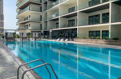 Yes, this Jadaf apartment has a swimming pool. Check the Facility Overview section for details about the pool and other available facilities.