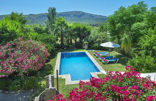 Villa El Campet is a charming Mallorca Villa with an enjoyable outdoor area. It has been made great use of local decor and designs. The cottage style villa which has two floors and beautiful views provides good and comfortable holiday accommodation and is decorated with rustic touch and bright colors.The entry to the villa is directly into the lounge. It has international TV channels and audio speaker for entertaining. From here there is access to a fully equipped kitchen with all the modern facilities and equipment that you may require during your holiday. Villa El Campet enjoys unlimited free WIFI. On the first floor there is a light and airy twin bedroom with excellent views towards the valley - There is also a second bright twin bedroom, both with well fitted wardrobes. There is a bathroom between these two bedrooms. All bedrooms include hot / cold air conditioning. To enhance your comfort, they are available to be used at any time during the day and night. In winter time there is a pellet stove in the lounge. From the lounge, wooden doors open onto the facing front terrace which is covered by a veranda, an outdoor dining space invites you to enjoy the perfect for dining under the open sky. The pool and area with sunbeds is located in front of the terrace. There is also a bathroom with shower and a laundry in this area.From here you enjoy marvelous views towards the mountains, valleys valley and the beautiful nature. Villa El Campet is situated on a plot partially screened by hedges , plants and shrubs with lawn areas and pretty flowerbeds fencing around.Villa El Campet is located in a privileged area of Pollensa, just minutes from its picturesque village where you will find a variety of cafes, restaurants, traditional bars and many typical shops with welcoming ambiance. This old town is renowned for its beauty and folklore. Any Sunday, you could visit the weekly market and find fresh farm products.You could also visit Puerto Pollensa, located 15 minutes from the Villa, an ideal place to settle back on the beach, practice water sports like kayaking, jet skiing or a taking boat tour. Take a dive a little further to Cala San Vicente for its clear waters.The use of car is needed to move freely and make the most of your stay, as there’s much more to explore at the surroundings of Villa El Campet!* * * * *Cleaning service, pool towels and a welcome basket is provided for free with every reservation. Tourist tax is included in the price online.For every confirmed booking, a guide with information about the local area and recommendations are provided, so that you can get the very best from your holiday.If you have any question or require assistance, we are always attentive and willing to help you.This villa can welcome babies. It has two baby cots and two high chairs available at no extra cost. Extra ones can be placed on demand.Our calendar is always 100% updated, so if your wished dates are free, be welcome to Book!