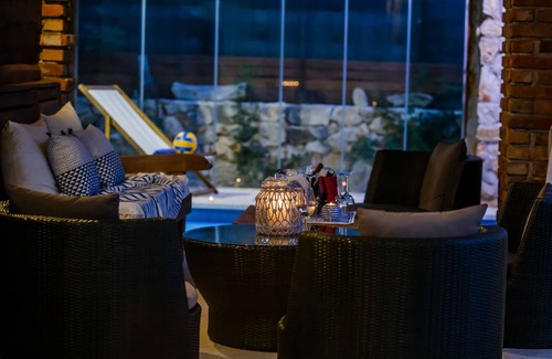 Villa consists of a kitchen, living room, main bathroom and two bedrooms with ensuit bathrooms. The mezzaine contains two additional comfortable double beds. All beds come with comfortable mattress, a choice of soft and hard pillowa and fine 100% cotton linens. The Villa has an outdoor kitchen equipped with a fireplace and all utensils. The poolside area is the central section of the property. The enclosed pool can be used year-round, the panels opened or closed as needed. The salt water pool has a heating and cooling system to offer guests the optimum temperature and relaxation experience as well as a counter-current swimming system. There is a bar beside the pool. The Villa includes an outdoor sun deck and gym, a little stone cabin where local foods, wines, brandies and olive oil are stored and a seasonal vegetable garden. consists of a kitchen, living room, main bathroom and two bedrooms with ensuit bathrooms. The mezzaine contains two additional comfortable double beds. All beds come with comfortable mattress, a choice of soft and hard pillowa and fine 100% cotton linens. The Villa has an outdoor kitchen equipped with a fireplace and all utensils. The poolside area is the central section of the property. The enclosed pool can be used year-round, the panels opened or closed as needed. The salt water pool has a heating and cooling system to offer guests the optimum temperature and relaxation experience as well as a counter-current swimming system. There is a bar beside the pool. The Villa includes an outdoor sun deck and gym, a little stone cabin where local foods, wines, brandies and olive oil are stored and a seasonal vegetable garden.
