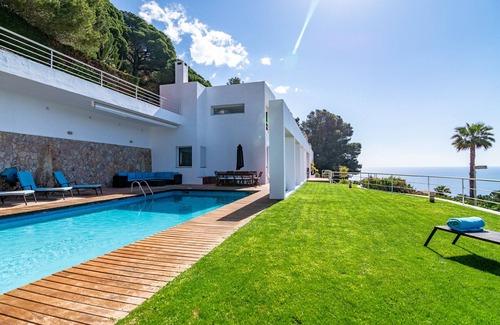 This stunning villa is located in the high end residential bay of Cala Sant Francesc, in Blanes.