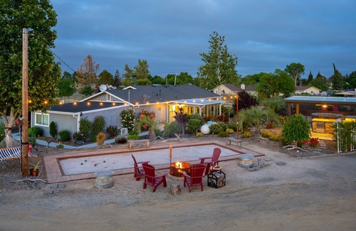 Escape to our serene countryside villa in Paso Robles right at the foot of the Pleasant Valley Wine Trail. Indulge in stunning vineyard views as you relax by the private pool and enjoy a friendly game of ping pong or bocce. The outdoor kitchen is perfect for al fresco dining. Immerse yourself in the beauty of nature, sip local wines, and experience true tranquility. Your perfect getaway awaits!