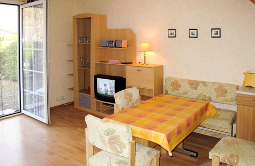 3-room terraced house 40 to 50 m2 on 2 levels. Practical furnishings: living/sleeping room with 1 sofabed, dining table, satellite TV, radio and CD-player. Exit to the garden. Kitchenette (4 hot plates, oven, toaster, kettle, electric coffee machine). Shower/WC. Electric heating. Upper floor: open walk-through room with sloping ceilings, ceiling height 70 - 180 cm with 2 beds. 1 double bedroom with sloping ceilings, ceiling height 70 - 180 cm, without wardrobe. Carpet. Patio. Barbecue. Facilities: baby cot. Please note: 2 pets/ dogs allowed. Smoke alarm. Wifi only at reception area.