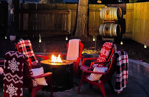 Our favorite amenity at 9th street is; the ability for indoor and outdoor living. The back of the home opens through french, double-dutch, glass doors to a gorgeous outdoor living space that has something for everyone. We offer comfortable table seating to enjoy meals outside under the custom designed pergola with a UV protected sunlit and see-through roof. Enjoy sitting on a tree swing, in the shade, with a book, or on the outdoor couch with all your friends (during summertime). Later in the evening, sit back to enjoy the fire-pit with outdoor landscape lighting shinning on stacked wine barrels from Domaine Serene and an antique corker from Normandy France. This space was designed to provide a peaceful and relaxing stay while enjoying the fresh country air and beautiful blue and starlight skies in the evening. On these warm summer mornings, we'll see you out on the deck, relaxing with morning coffee and this space is perfect for afternoon wine and cocktails.
