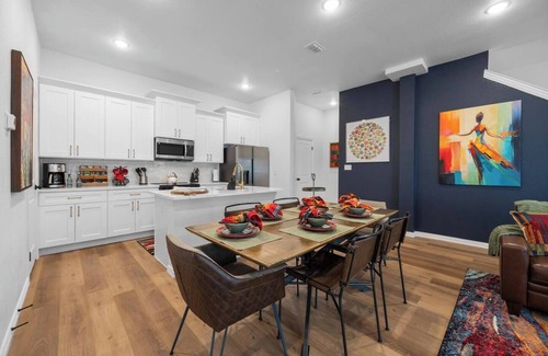 🗨️ "Beautiful, spacious townhome in a great location! We quickly and easily walked to AT&T stadium, Globe Life Field and Texas Live! during our stay, making the location perfect! The home is just as pictured and the host was quick to respond to questions. The upstairs coffee bar and rooftop putt putt were great amenities!" - Laura