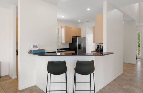 This 4-bedroom villa is located on a dead-end street and is right on the canal. As you enter the house your will find a cozy breakfast nook on your right-hand side. The kitchen is well equipped and the connecting dining room area offers enough room to host your group. The living room has a comfortable couch and a large TV. This villa has free WIFI.