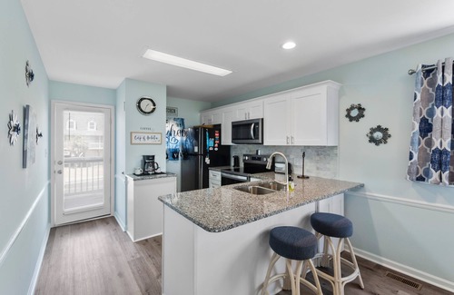 You will appreciate the spacious open-concept living room/dining room/kitchen area, with comfortable furniture, lots of natural light, updated hardwood flooring and awesome views of the sparkling Atlantic Ocean! The well-appointed kitchen is complete with updated appliances. This condo will comfortably accommodate up to 4 guests. Bedroom #1 is complete with a Queen bed, TV, ceiling fan, full private bath with tub/shower combo and amazing ocean views! Bedroom #2 is complete with a Queen bed, TV, ceiling fan, shared hall bath with tub/shower combo, and a street side view.