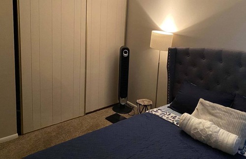 Welcome to this unique, cozy, and tranquil getaway home with living room and family room w/dec fireplace, sliding door leading to covered back porch. 10 miles from airport. You get to have this entire well furnished house with 2 bedrooms, office space, basement, laundry, living and family room. Open plan kitchen with stainless steel appliances, and granite counter top. House is located on a quiet cul-de- sac street. We have a small Grill and fireplace behind the house for guest use.