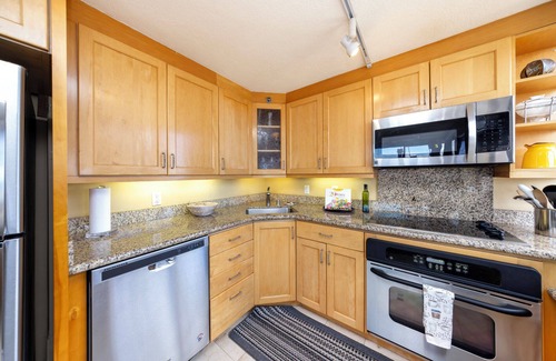 This elegant corner unit (674 sq. ft.) offers 1 King Size bed, a flat screen TV, 1 full bath, and includes a fully equipped gourmet kitchen with natural-wood cabinets, granite counters, and upgraded dishwasher & appliances. Recently renovated flooring, a luxurious leather sofa, and fresh paint throughout the condo. Amenities include A/C, cable, free Wi Fi, washer/dryer, ample closet space, bedding & towels. This modernized, secure, gated, non-smoking building offers a covered parking space, heated pool/jacuzzi, putting green, walking path, exercise room, and the most spectacular views of Honolulu from the glass-enclosed, rooftop sky terrace on the 45th floor (BBQ area and party room available on reserve). The famous Ala Moana Shopping Center is 2 blocks away for shopping, entertainment and dining; less than 15 minutes from Chinatown and downtown Honolulu; and only 20 minutes away from the airport.