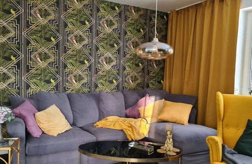 A living room and a BBQ grill are featured at this 2-bedroom, 1.5-bathroom rental. Bathroom amenities include a hair dryer, towels, and toilet paper. Prepare a home-cooked meal in the kitchen, complete with an oven, a stovetop, and a refrigerator, as well as a coffee maker, an electric kettle, and a microwave.