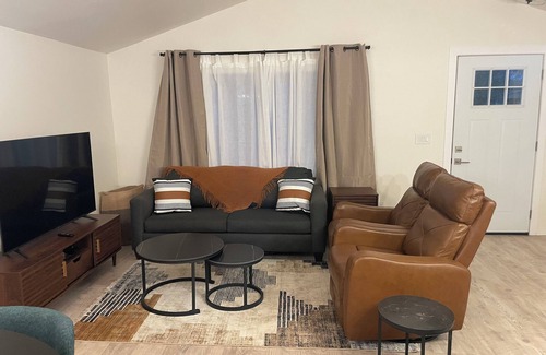 Newly renovated kitchen comes fully equipped and nicely appointed with quartz counter tops and new stainless steel appliances. Coffee machine kcup. Family room has smart tv for relaxation and enjoyment.