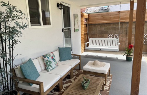 As you approach our house you are welcomed by succulents(Take one cutting if you like for a souvenir=) You can let yourself into the house with our smart lock. You’ll walk into our living room and you’ll find a large screen smart TV and seating for five. The living room also contains a couch with a queen size, memory foam pull out bed. The flat sheets and blanket and pillows can be found in the dresser and closets. You can turn the living room into your own private quarters by pulling the pocket door closed.