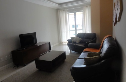 Great and comfortable apartment with 205sqm facing the sea, with 1 suite for couple with auxiliary bed, 1 double bedroom, 1 bedroom for 3 people, large living and dining room, kitchen, service area and balcony with barbecue. It still has a washing machine, electric oven, microwave and air conditioning. The condo has washer, elevators, janitor service, cleaning and night surveillance. The apartment has 2 parking spaces. Free Wi-Fi
