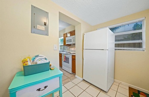 Across the street from the beach. you can hear the waves. This Apartment is fully stocked with all kitchen items, linens, towels, beach towels, and two beach chairs. Central Air Conditioning. (Access to shared free laundry) Restaurants and grocery stores nearby (Publix 1 mile). Multiple public beach and River areas within a few miles and world class fishing is only 14 miles away at the Sebastian Inlet. WIFI, TVs with Roku (you can use the Roku to link most streaming accounts) in the living room and both bedrooms. Back yard fenced in patio with table and seating for 4 off the kitchen for outside drinks and dining. Apartment has parking for 2 cars. 2 bedrooms and 2 full bath rooms (2nd bathroom is off the living room). Apartment is the center unit of a 3-unit building. PET FEE $100 FOR EACH PET