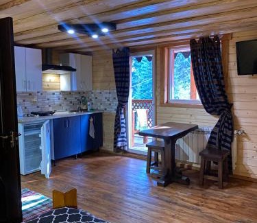 Providing a garden, Номер 6 Садиба У Ані offers accommodations in Synevyrsʼka Polyana. This apartment provides a terrace. There's a picnic area and guests can use free Wifi and free private parking. Offering a balcony with mountain views, this apartment also has a satellite flat-screen TV, a well-equipped kitchenette with a fridge, a stovetop, and kitchenware, as well as 1 bathroom with a shower and a hair dryer. The property has an outdoor dining area.